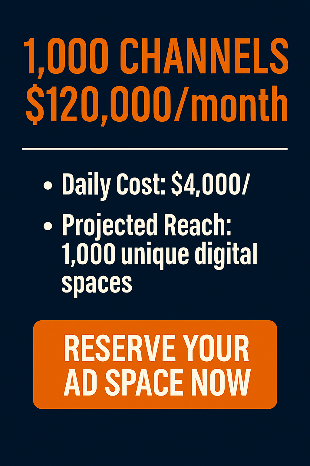 Secure **ad space on 20 premium channels** for **$2,400 per month