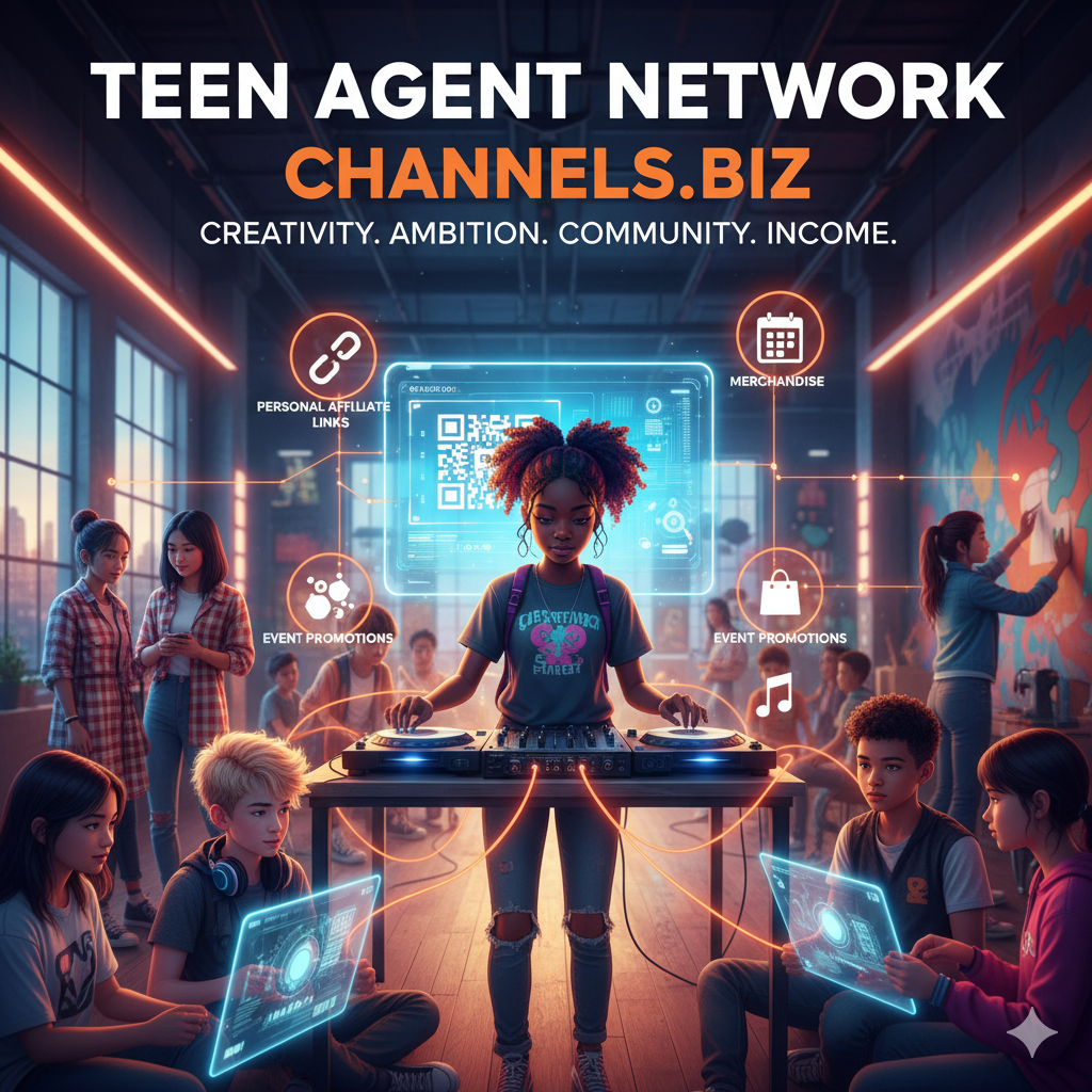 Turn creativity and ambition into opportunity. With the Teen Agent Network, young entrepreneurs, students, and creators can build their own channel to showcase talents, projects, events, and products. From fashion and music to gaming, art, and school clubs — teens can monetize their passions while learning real business skills.